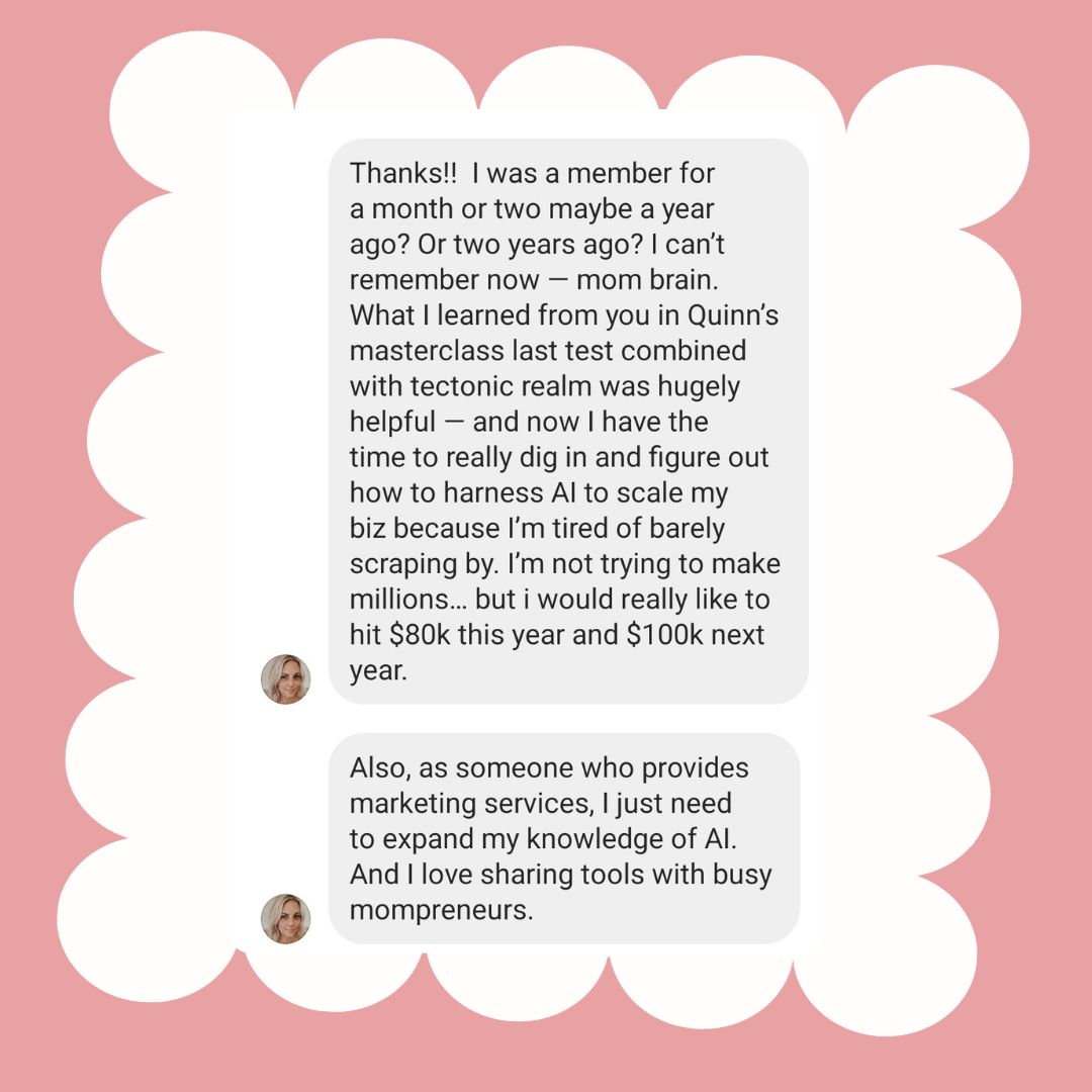 Strategist, mom, transplant survivor, fantasy book nerd—and the woman who figured out how to use AI to build a business that gives you your time back.