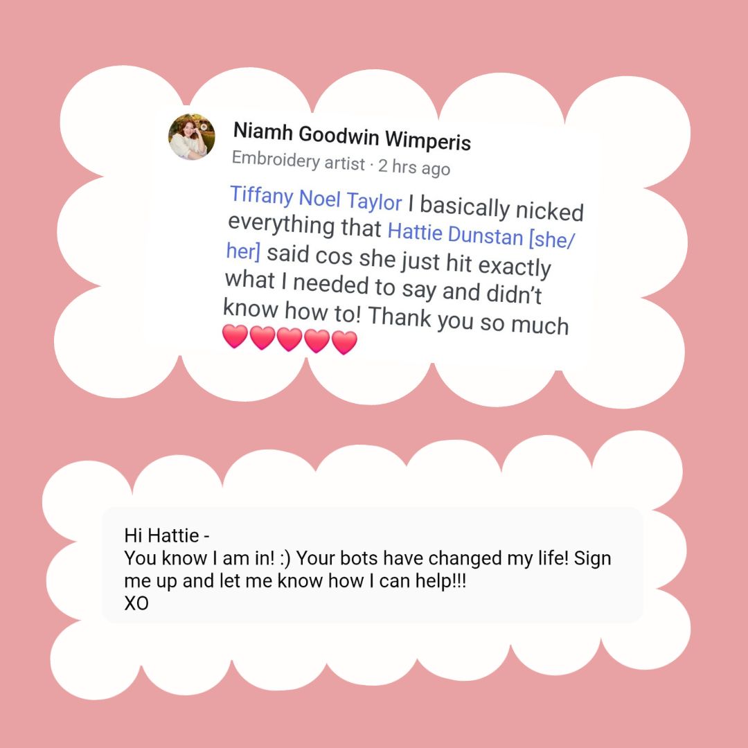 Hi, I’m Hattie! After working with 180+ entrepreneurs, I’ve developed an AI strategy system that actually works for real businesses—not just Silicon Valley tech bros.